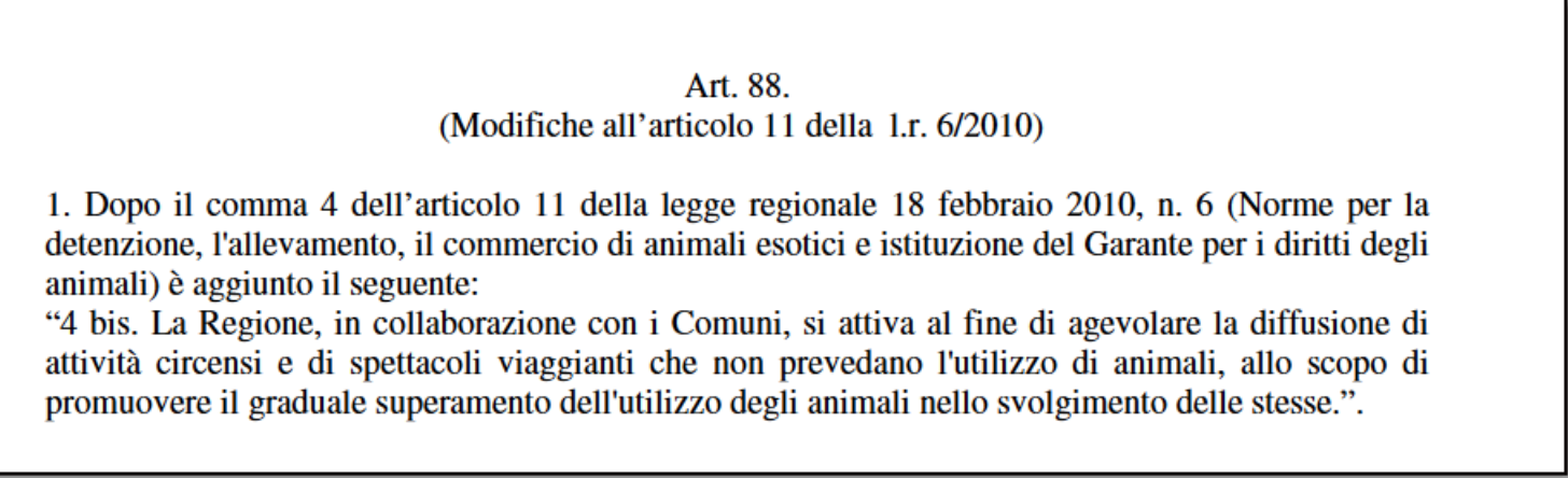 La Regione definisce in norma il suo impegno a promuovere i circhi senza animali!