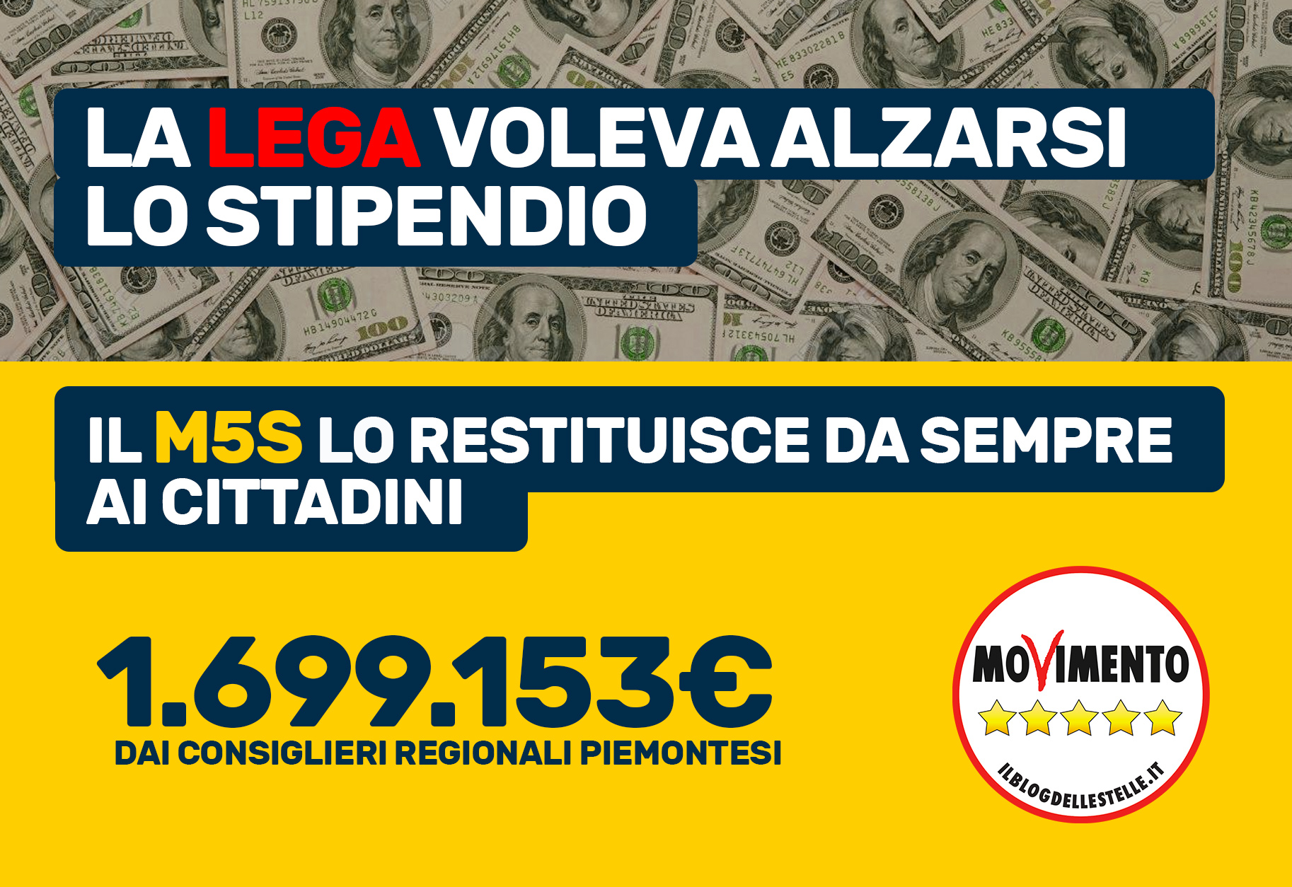 Ricordiamo infatti che è già possibile ridursi lo stipendi a prescindere dalle leggi in vigore. Dal 2014 al 2019 i Consiglieri regionali del Movimento 5 Stelle hanno destinato 1.699.159,33 € delle eccedenze degli stipendi alle esigenze del Piemonte.