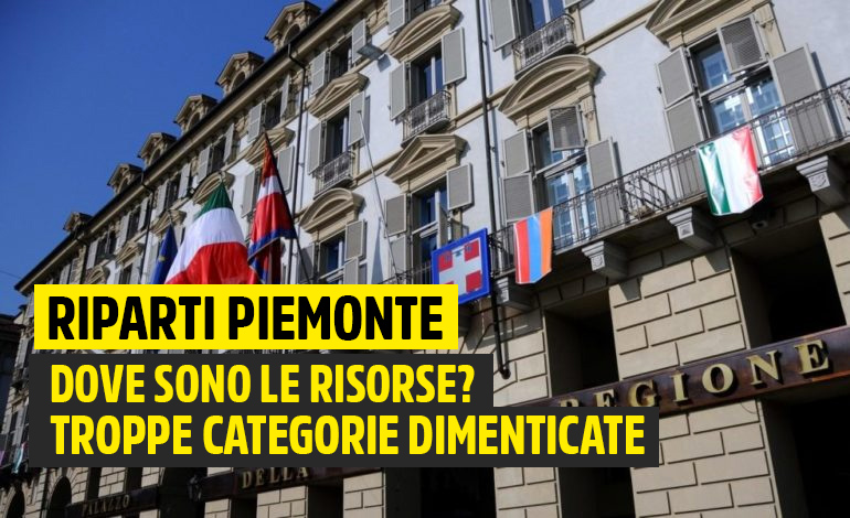 Il Riparti Piemonte dimentica buona parte del Piemonte. Completamente esclusi interi settori dai bonus, ne citiamo alcuni: ambulanti e commercianti no food, liberi professionisti (ad esempio i fotografi), settore sportivo, settore cultura, associazionismo, settore turismo (agenzie di viaggio) ed alcune categorie di servizi alla persona.